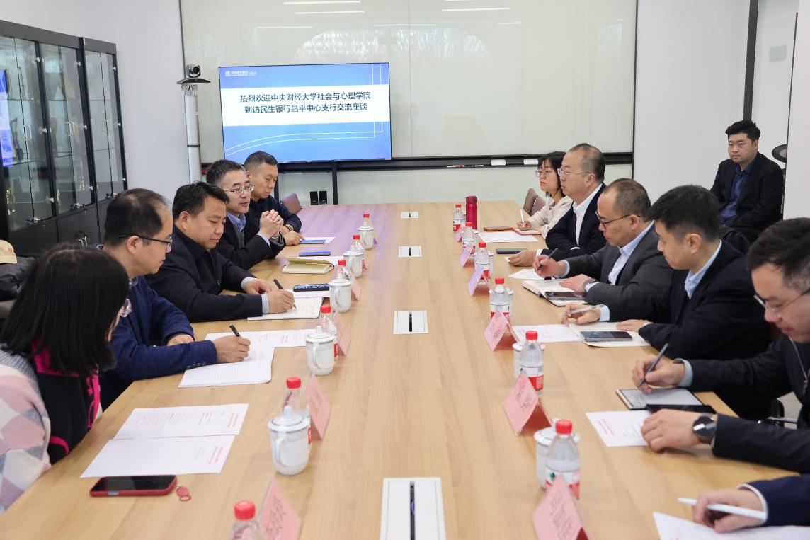 中国民生银行昌平中心支行行长李斌对社会与心理学院一行的到访表示热烈欢迎。他全面介绍了民生银行及昌平中心支行的改革发展情况,重点解读了辖内各支行差异化发展定位与联动扶持机制,并表示民生银行将积极为学生搭建系统性、多元化的实习实践平台,为人才培养提供切实有效的支持。民生银行机构业务部总经理助理王磊回顾了民生银行与学校已有的合作基础,期待以此为契机,进一步细化实习基地建设的具体合作方案,推动合作项目尽快进入实质性落地阶段,在消费者洞察、金融行为研究等领域深入挖掘合作潜力,拓展产学研协同创新的广度与深度。